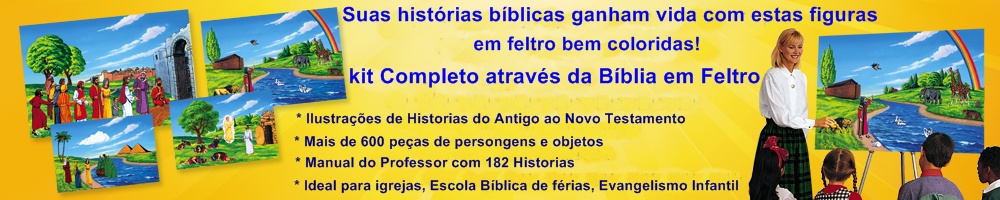 Com nossos feltros, o ensino vai abrir toda uma nova maneira de aprendizado das histórias da Bíblia para os seus filhos como também as crianças da Escola Bíblica Dominical. Com nossos materiais a aprendizagem em feltros vai ser divertido e natural. As lições que você vai ensinar não serão esquecidas pelo resto da vida!!!